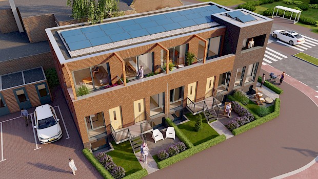 De woningen worden hoogwaardig gebouwd, met oog voor duurzaamheid en toekomstbestendigheid. Denk aan volledig geïsoleerde gevels, zonnepanelen op het platte dak, en een eigentijdse baksteenarchitectuur die aansluit bij het dorpse karakter van Groesbeek. De kleinschalige opzet en het speelse gevelbeeld geven het geheel een warme, uitnodigende uitstraling.