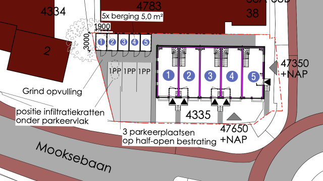 Elke woning beschikt over een externe berging met eigen elektrameter. Praktisch voor fietsen en opslag.