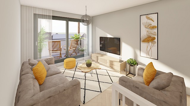 Bovenin bevindt zich de lichte en ruime woonkamer met toegang tot het balkon. Deze ruimte is flexibel in te delen en biedt eventueel mogelijkheid tot het creëren van een tweede (afsluitbare) slaapkamer of werkkamer.