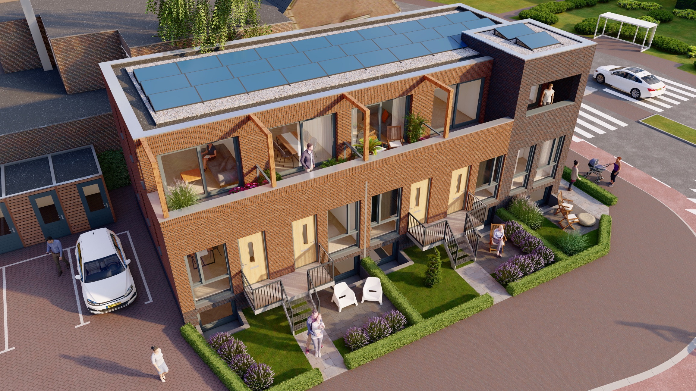 Elke woning beschikt over een externe berging met eigen elektrameter. Praktisch voor fietsen en opslag.